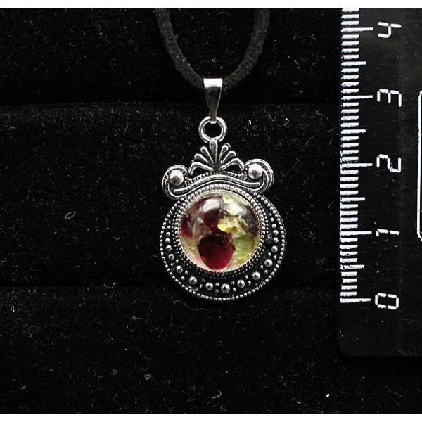 Кулон из хромдиопсида и граната (кабошон-мозаика), круг 12мм, оправа "корона"