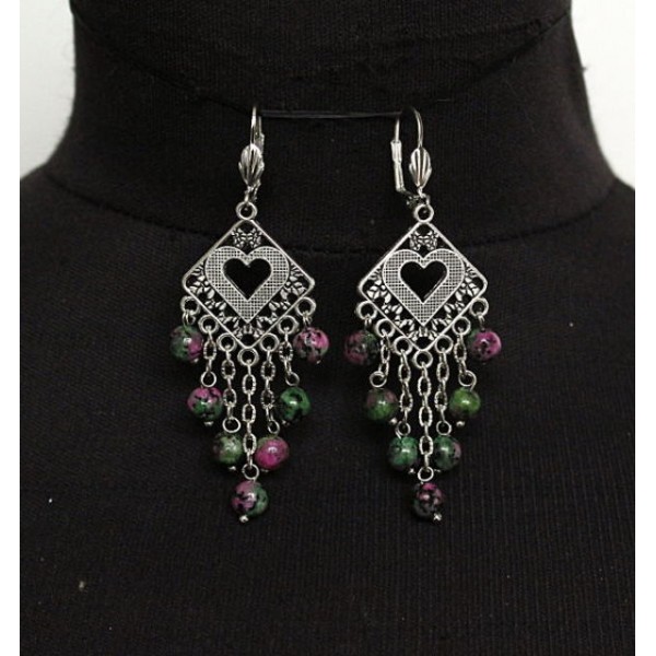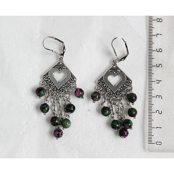 Серьги из цоизита (циозита) с рубином, шарик 12..