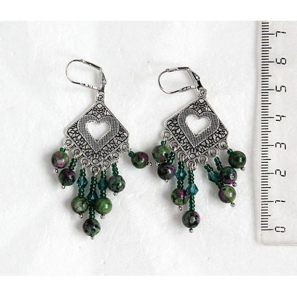 Серьги из цоизита (циозита) с рубином, шарик 12..