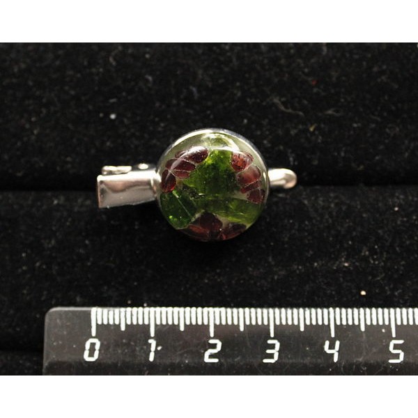 • Заколка-крокодил с хромдиопсидом и гранатом (кабошон-мозаика), круг 18мм