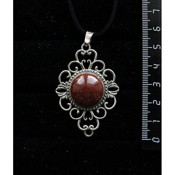 Кулон из авантюрина красного (синт.), круг 18мм, оправа "ромб с узором"