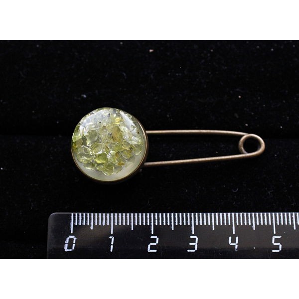 Брошь-булавка с хризолитом (кабошон-мозаика), круг..