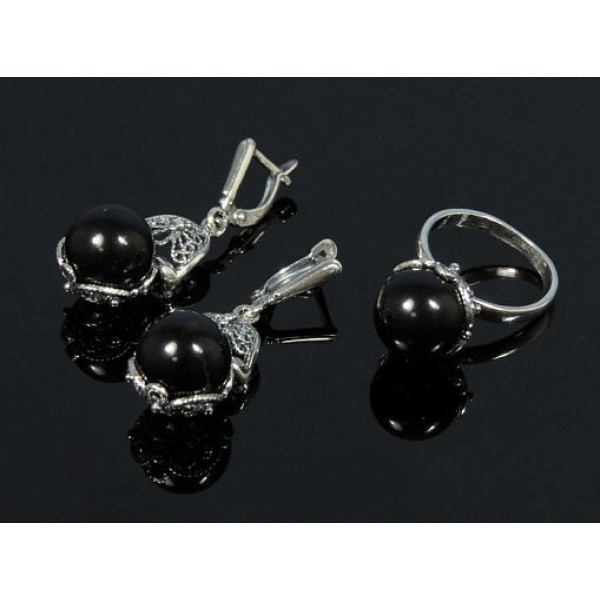 sg01-00485, sg01, sg01-, 01-, 01-00485, кольцо_и_серьги_с_агатом, агат_черный, серьги_агат_черный