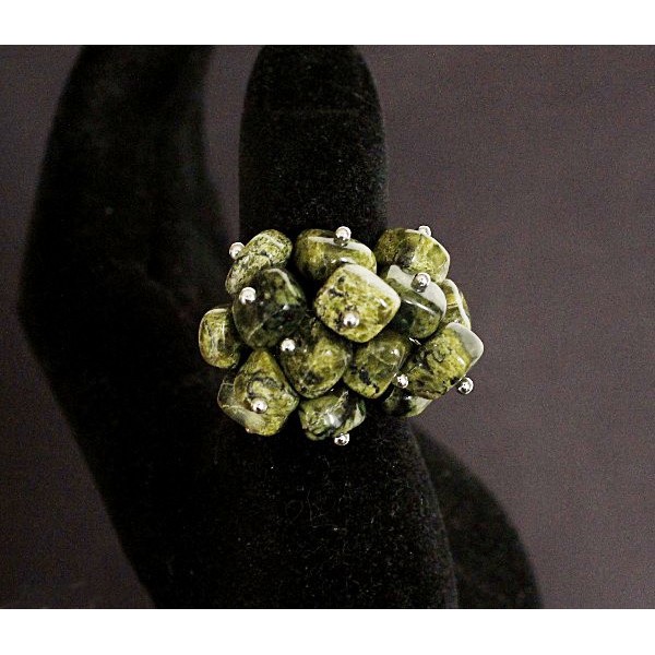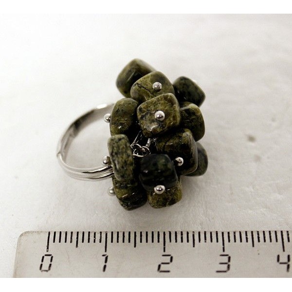 Кольцо с яшмой зеленой "гроздь" безразмерное..