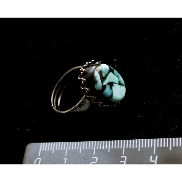 Кольцо с бирюзой иск., овал 18х13мм, безразмерное..