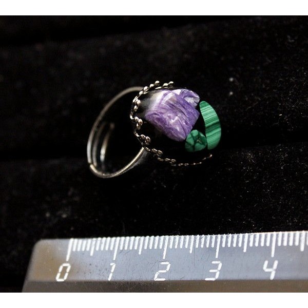 Кольцо с чароитом с малахитом (кабошон-мозаика), о..