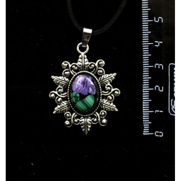 Кулон из чароита с малахитом (кабошон-мозаика), пр..