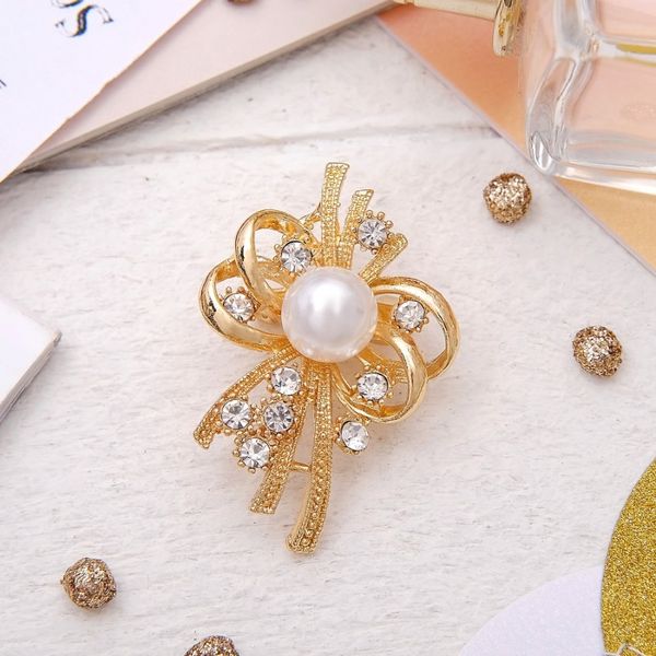 • Брошь "Жемчужная классика" цветок, цвет белый, цвет золотистый (пластик, стразы)