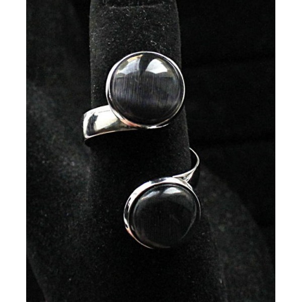 Кольцо из кошачьего глаза (синт.), цвет черный "2 круга", круг 12мм, безразмерное