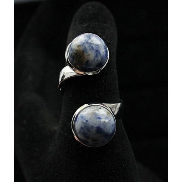 Кольцо из лазурита бело-синего "2 круга", круг 12мм, безразмерное