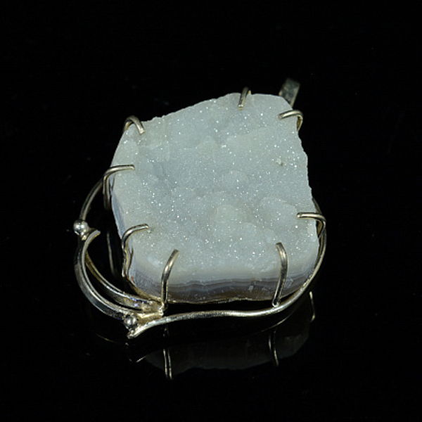 Кулон халцедон щетка в посеребрении 36*40мм