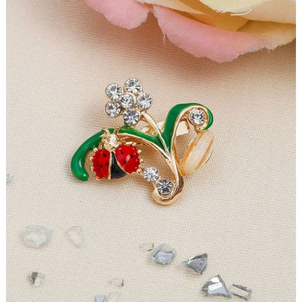 Брошь ассорти "Божьи коровки в цветах", цветная, цвет золотистый (пластик, стразы, эмаль)