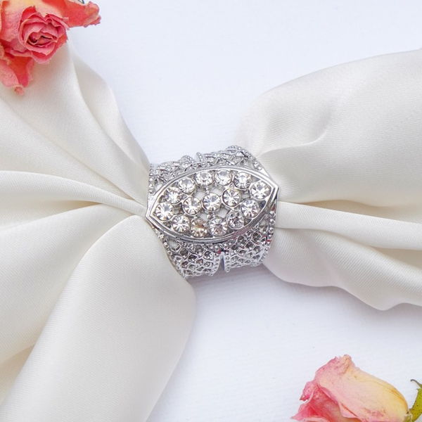 Муфта для платка "бочонок", цвет белый, цвет серебристый (стразы, бижутерный сплав)