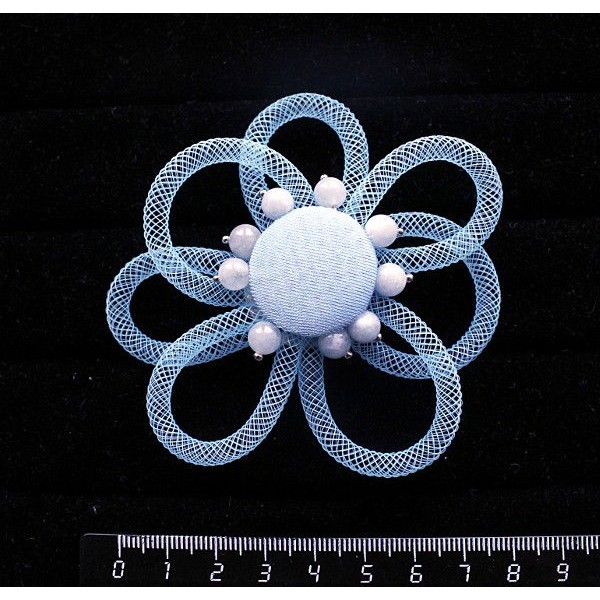Брошь из кианита и ткани "цветок" с ювелирной сетк..