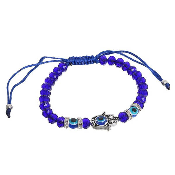 Браслет-оберег "Рука счастья Хамса", хрусталики, цвет синий (стекло, стразы, текстиль)