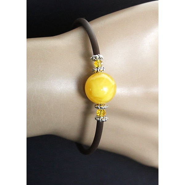 Браслет из янтаря, шарик 14мм цвет желтый, на струнке