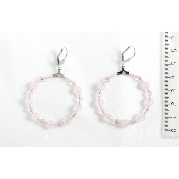 Серьги из кварца розового "круг", диаметр 40мм, шарик 6мм + хрусталь