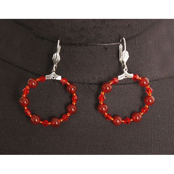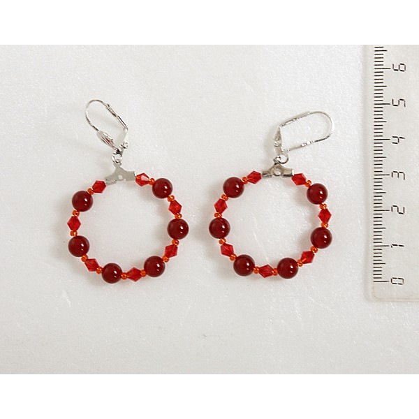 Серьги из сердолика "круг", диаметр 30мм, шарик 6мм + хрусталь