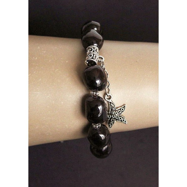 Браслет из граната, мятый овал 12-15мм, с подвеской