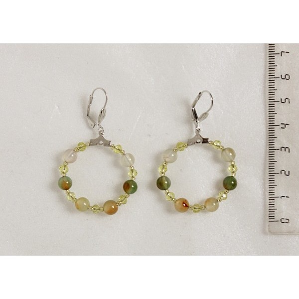 Серьги из агата оранжево-зеленого "круг", диаметр 30мм, шарик 6мм + хрусталь