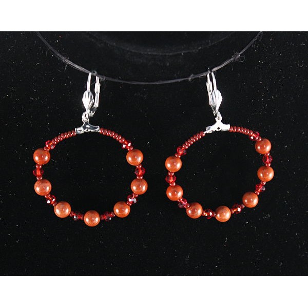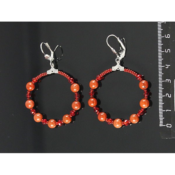 Серьги из яшмы красной "круг", диаметр 40мм, шарик 6мм + хрусталь