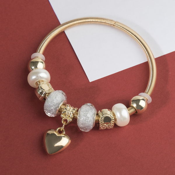 Браслет с жемчугом "Марджери" сердце, цвет серебристо-белый, цвет золотистый (пластик, бижутерный сплав)