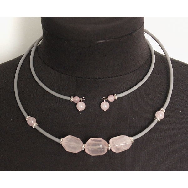 Колье из кварца розового на струнке, крупная огранка, шарики 8мм и 6мм