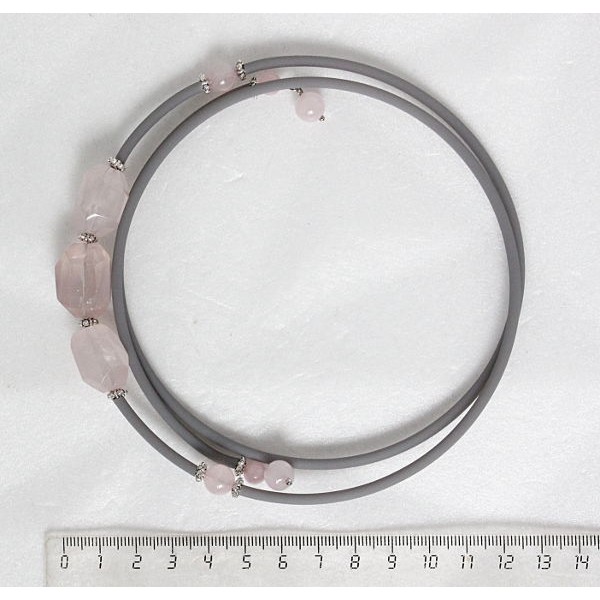Колье-галстук из кварца розового, шарики 12мм, 10мм, 8мм и 6мм + хрусталь + овальные сегменты
