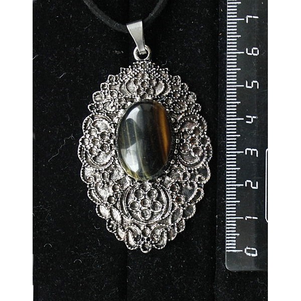 Кулон из тигрового глаза, овал 25х18мм, филигрань