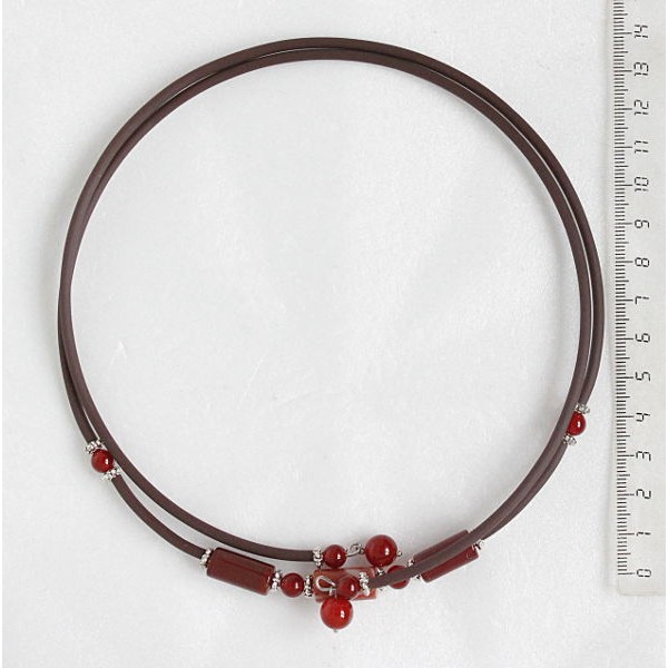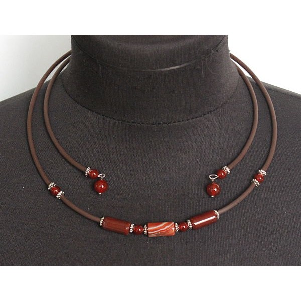 Колье из сердолика на струнке, цилиндры 16х8мм, шарики 8мм и 6мм