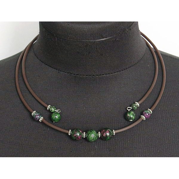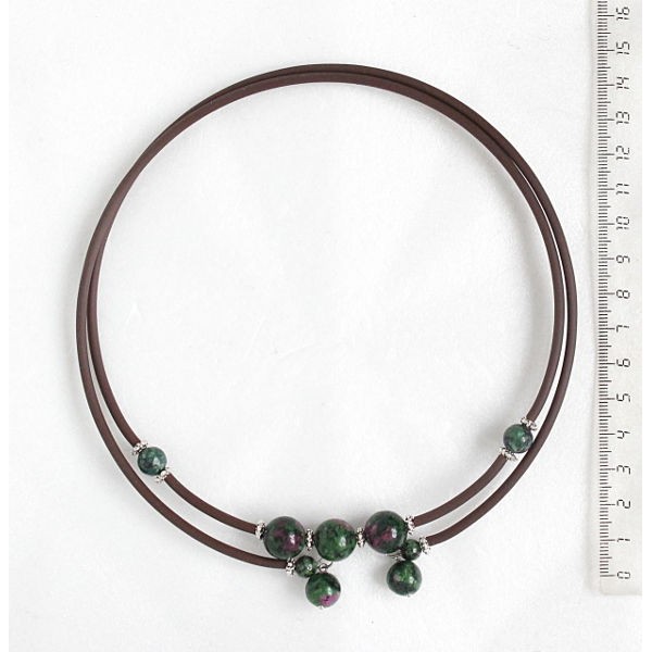 Колье из унакита на струнке, прямоугольник заоваленный 16х12мм + шарики 8мм и 6мм