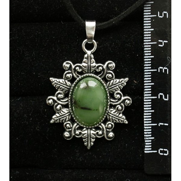 Кулон из кошачьего глаза (синт.), цвет зелёный, овал 18х13мм, "папоротник"