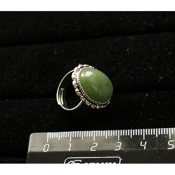 Кольцо с нефритом, овал 25х18мм, безразмерное (лит..