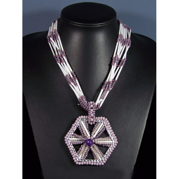 Бусы из чешского стекла "Стиль" 7нитей шестиугольник 70*70мм цв.сиреневый, 47см