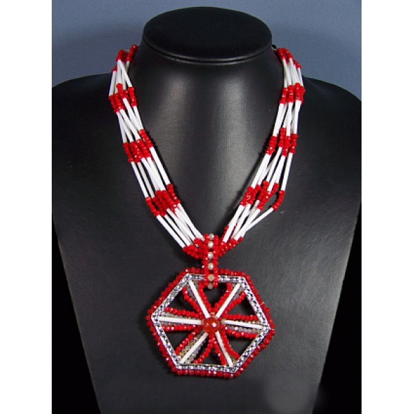 Бусы из чешского стекла "Стиль" 7нитей шестиугольник 70*70мм цв.красный,белый, 47см