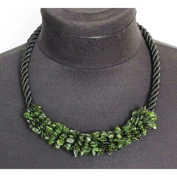 Колье из хромдиопсида плетеное на шнуре 9мм