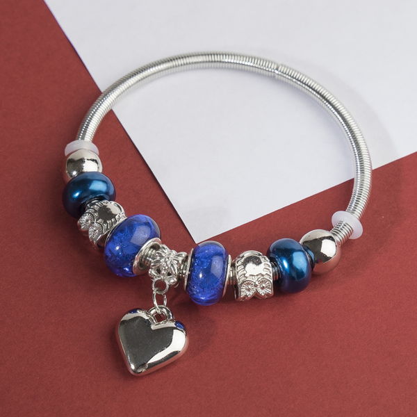 Браслет ассорти "Марджери" сердце, цвет сине-морской, цвет серебристый (пластик, бижутерный сплав)