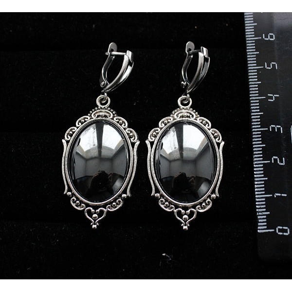 • Серьги из гематита, овал 25х18мм, оправа "медальон", швензы посеребрение