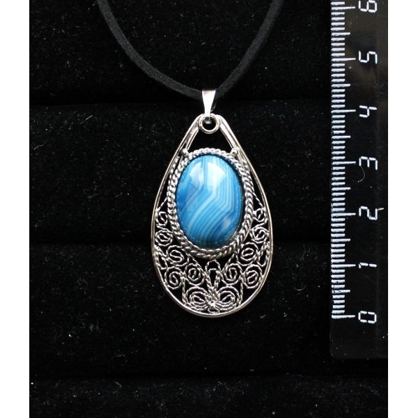 Кулон из агата синего (тонировка), филигрань, ручная работа, камень овал 18х13мм
