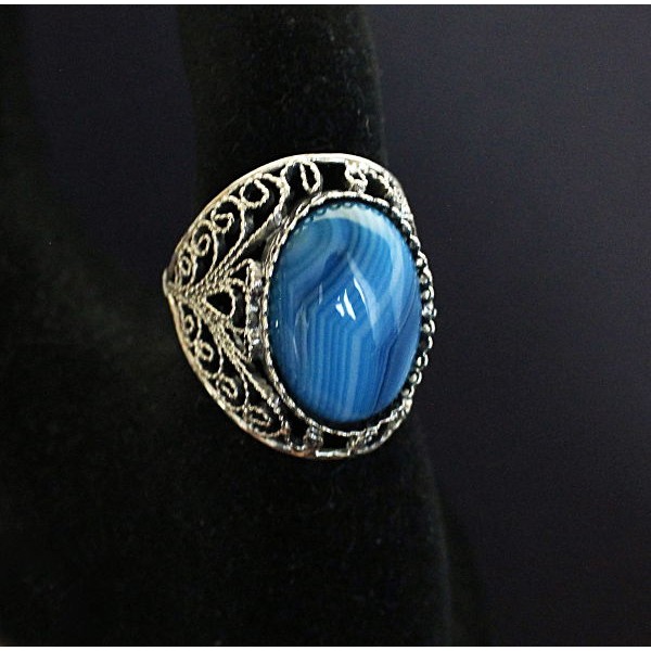 • Кольцо из агата синего (тонировка), филигрань, ручная работа, камень овал 18х13мм