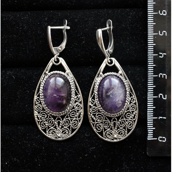 Серьги из аметиста, филигрань, ручная работа, камень овал 18х13мм, швензы посеребрение