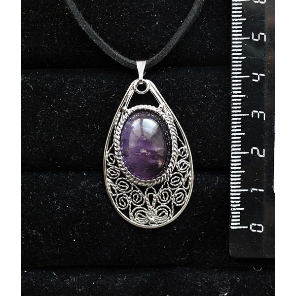 Кулон из аметиста, филигрань, ручная работа, камень овал 18х13мм