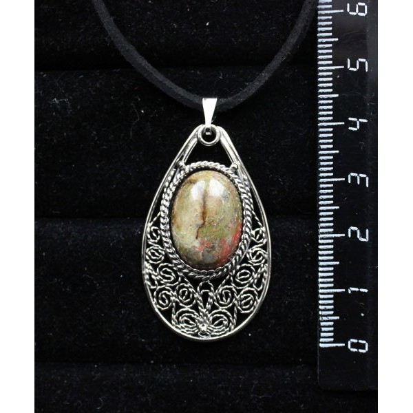 Кулон из унакита, филигрань, ручная работа, камень овал 18х13мм