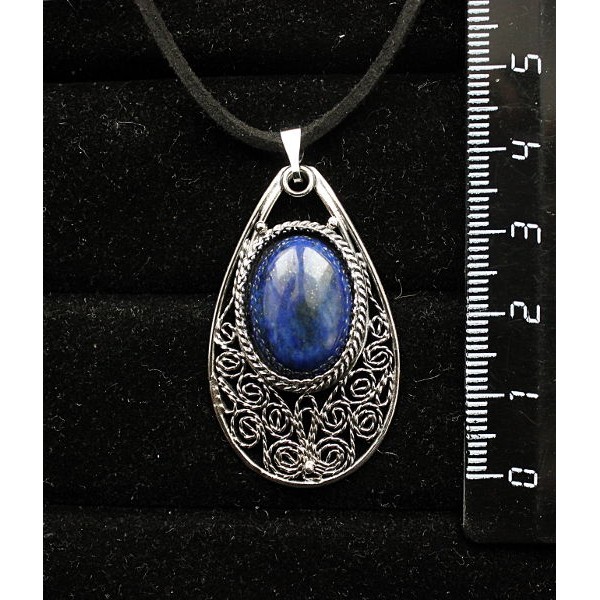 Кулон из лазурита ярко-синего, филигрань, ручная работа, камень овал 18х13мм