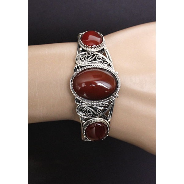 Браслет из сердолика, филигрань, ручная работа, камень овал 25х18мм, овал 18х13мм