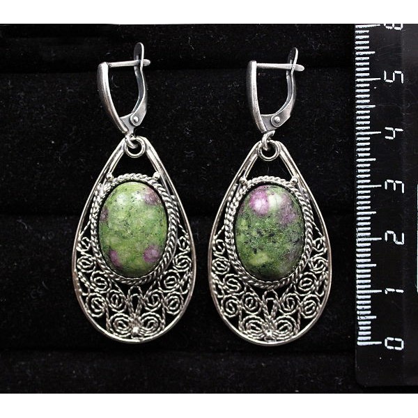 sg57-00135, sg57, sg57-, 57-, 57-00135, серьги_из_цоизита, филигрань, цоизит, серьги_цоизит, овал_18х13
