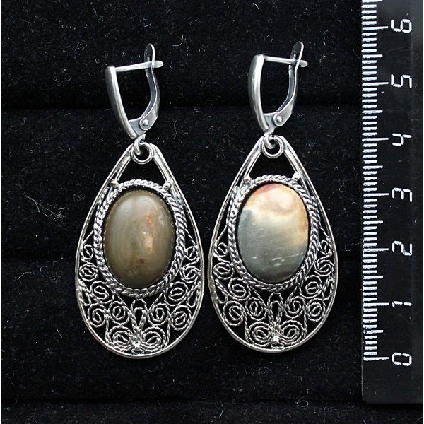 sg62-00444, sg62, sg62-, 62-, 62-00444, серьги_из_яшмы, филигрань, яшма, серьги_яшма, овал_18х13