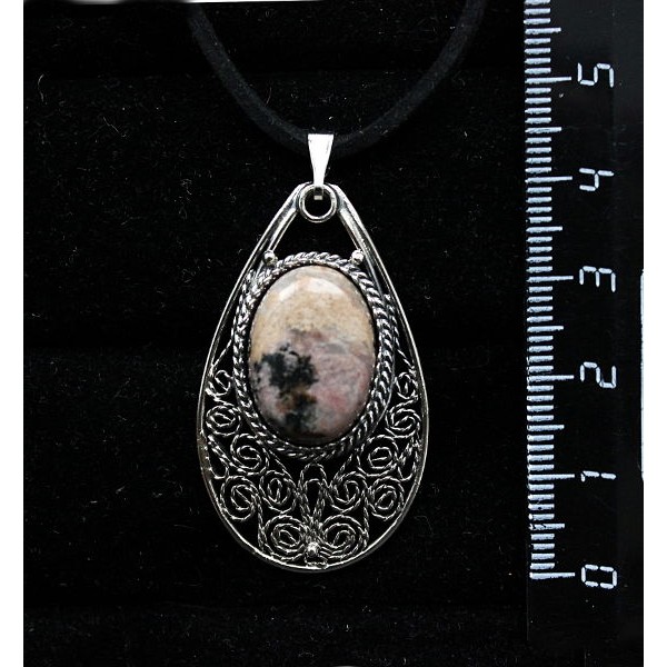 Кулон из родонита, филигрань, ручная работа, камень овал 18х13мм