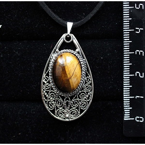 Кулон из тигрового глаза, овал 25х18мм, филигрань