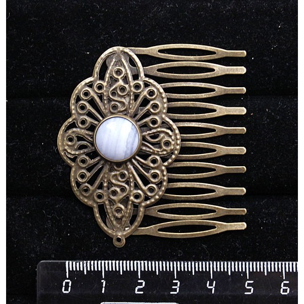 Заколка-шпилька из агата голубого (сапфирин), круг 12мм, основа цвет бронза с узором